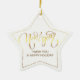 Star-shaped ceramic ornament featuring your photo on the front side for a personal and memorable Christmas touch. The reverse side includes the festive message “New Year, I Wish You a Happy Holiday,” adding warmth and seasonal cheer. A beautiful keepsake for family memories and a thoughtful personalized gift for the holidays and Christmas season.