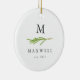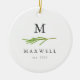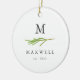 Enfeites de natal russo com uma simples ilustração das folhas do pinheiro com um monograma acima. Você pode adicionar sua foto na parte traseira do produto. Excelente para recém-casados ou famílias.