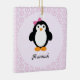 Ornamento De Cerâmica Pinguim bonito com fundo floral