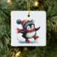 Ilustração química de um pinguim bonitinho em skates de gelo impressos em um ornamento cerâmico comemorando o primeiro Natal do bebê. O texto no verso pode ser alterado. Imagem assistida por IA adquirida com uso comercial. Trabalho de arte: RedHeronLighthouse
