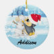 Ornamento De Cerâmica Pinguim Da Cena De Inverno E Neve Com Nome