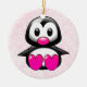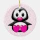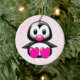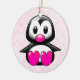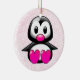 Design pinguim em preto e pastilha elástica, cor-de-rosa, com rosa claro/fundo rosa.