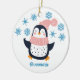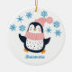 Um pinguim bonito num lenço de inverno rosa sob lindos flocos de neve azuis. Personalize este belo presente de feriado com o nome de um amigo para um adorável Enfeites de natal personalizado.