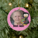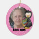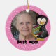 Um fundo cor-de-rosa com flocos de neve brancos, um pinguim, texto que lê "Melhor Mãe", e uma área onde você pode adicionar sua foto favorita, assim como personalizar o ornamento com uma citação ou outro texto em um ornamento de manutenção da Melhor Mãe do Pinguim que é muito fofo!