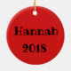 Comemore a mágica do Natal com este pinguim precioso vestido em um ornamento dos presentes do rolamento do chapéu do papai noel que você possa personalizar. Caracteriza um fundo festivo das bolinhas e das listras. 100% personalizado ao nome da sua criança e ao ano do nascimento. Uma adição pequena doce a alguns árvores do feriado, envoltórios, etc.