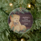 Crie um ornamento comemorativo de fotos de manutenção para o Primeiro Natal de um bebê com um ursinho de pelúcia giro contra o fundo de madeira rústico e pinheiros e cones de pínus e personalizado com o PRIMEIRO NATAL do NAME'S e ano na frente e uma foto de sangramento de cheio no verso marcada com pinheiros e pínus cones. Entre em contato com o designer por meio do Zazzle Chat ou makeitaboutyoustore@gmail.com se você quiser que este design seja modificado ou outro produto.