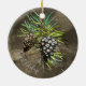 Pine cone d'água pintando ornamento para sua árvore de natal, cumprimentando seu amigo com feriados felizes.