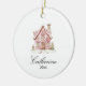 Pink Gingerbread House Christmas Custom Name Ceramic Ornament Gift