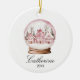 Ornamento De Cerâmica Pink Snow Globe Christmas Cozy Town Custom Name