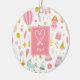 Ornamento De Cerâmica Pink Unicorn Party - Padrão Monograma - Natal
