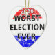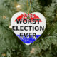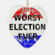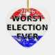 Os piores candidatos de sempre. Círculo em vermelho, azul e branco, texto em preto com contornos brancos. Efeito perturbado aplicado ao design.