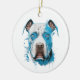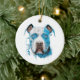 Pitbull branco com olhos azuis O Enfeites de natal do amante de um cão de arte IA.