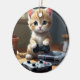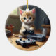Ornamento De Cerâmica "Pixel Paws: The Gamer Kitten in Action"