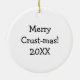 Enfeites de natal com foto de pizza de queijo de prato profundo. Pizza de feliz Crustmas.