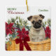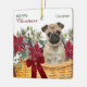 Ornamento De Cerâmica Poinsettia Pug Cachorro Cachorro de Natal