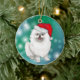 Ornamento De Cerâmica Pomerânia Branca de Cachorro Vermelho Santa Hábito