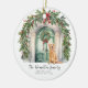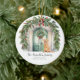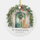 Um Ornamento Feriado de Natal com uma bela porta de aquarela, coroas, arcos e um belo cão de recuperação de ouros - decorações de Férias de Ricaso - adicione seu próprio texto e uma fotografia (no verso)