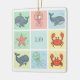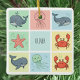 Este adorável ornamento personalizado, com o tema do oceano, apresenta rabiscos de baleias esboçadas, águas-vivas, estrelas-do-mar e caranguejos! Estes designs brincalhões exibem linhas moles, arredondadas e expressões alegres, colocadas sobre fundos de cor pastel como verde-menta, rosa-bebê, azul-pó e amarelo-pálido.