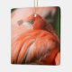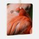 Foto original de aproximação de um flamingo batendo a cabeça em suas penas.