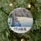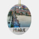 Mostre seu amor pela cidade de Praga, República Tcheca, com este lindo ornamento com uma foto da Ponte Charles. Também contém uma colagem colorida com fotos de Praga, incluindo a Praça Velha da Cidade.
