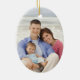 Adicione seu nome de família e sua foto a esta praia tropical temido ornamento de manutenção de Natal com uma aquarela fofa flamingo com chapéu de santa e decoração de férias. No verso está um modelo de foto fácil de personalizar.