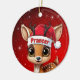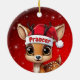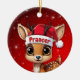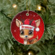 Prancer! Celebrate the holiday season with this festive round ceramic red ornament featuring an endearing woodland forest animal cartoon graphic of a cute baby reindeer wearing a Santa hat. Perfect deer with antlers for decorating your tree or as a thoughtful gift, this whimsical doe decor makes a cherished keepsake for years to come. Customize by changing the text, the font, the font color, or remove the text. You can even transfer this design onto other products. Enjoy this design your way! Check out ForestBabies Xmas Deer Collection for matching decorations. 🎄🦌
