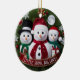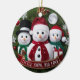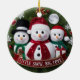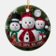 Celebrate the holidays with this gorgeous, premium-quality Snowman Family Ceramic Circle Ornament. Featuring the heartwarming phrase "LITTLE SNOW, BIG LOVE," this design showcases a traditional festive wreath surrounding an adorable snow-family of three. Perfect for commemorating your Family's First Christmas or as a cherished keepsake for a new baby or newlywed couple. The luxury, richly detailed design with deep reds and greens makes it a beautiful addition to any tree. A timeless holiday gift!