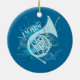 Ornamento De Cerâmica Presente azul da árvore de Natal do Grunge da