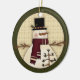 Presente da lembrança do boneco de neve do Natal do país para sua árvore ou para dar como um presente de época natalícia para clientes, amigos, família. O ornamento cerâmico com a linha do cair do ouro tem o design engraçado do boneco de neve com arte C. Cheryl Seslar. Aperfeiçoe como um stuffer e um presente da meia laço-em demasiado.