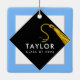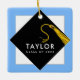 Formando o presente de manutenção com boné de formatura preto e talão de ouro sobre fundo azul claro. Editar texto para adicionar o nome do formando e o ano de classe do mais velho.
