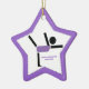 Presentes de ginástica, artista de ginástica, ornamento cerâmico em forma de estrela, mostrando um ícone negro minimalista de uma ginasta vestindo um leotard roxo com uma borda roxa ao redor.