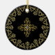 Um ornamento clássico preto e dourado, isto seria excelente numa árvore de Natal que tem pop de cor que vão bem com este esquema de cores.