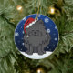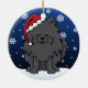 Enfeites de natal pretos bonitos de Pomeranian, tirados em desenhos animados do kawaii! Esta raça adorável do cão está vestindo um chapéu vermelho do papai noel, e os flocos de neve estão caindo toda em torno dele. Absolutamente adorável, perfeito para a árvore do Xmas do amante do cão!