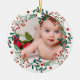 O primeiro Natal do bebê fotografou cereja de férias, Cerâmica Ornament.