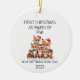 Primeira Família de Natal de Ornamento Cerâmico Cerâmico de Cinco Raposas O primeiro Natal perfeito para seu primeiro Natal com seu novo bebê. Personalize seu ornamento com seus nomes familiares e data.