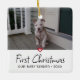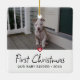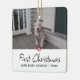 Puppies Primeiro ornamento de Natal. O design mostra a sua foto favorita, a impressão decorativa da pata de sotaque com o coração partido em letras vermelhas e brancas.
