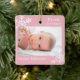 Ornamento De Cerâmica Primeira Foto Personalizada Rosa de Natal com Floc
