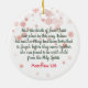 Um ornamento cristão personalizado, um bebê fofo Otter com chapéu de Natal e uma citação bíblia nas costas. Mateus 1:18 "Agora o nascimento do Cristo de Jesus aconteceu desta forma. Quando sua mãe Mary foi amada por Joseph, antes que eles se juntassem, ela foi encontrada com uma criança do Espírito Santo."