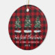 Roteiro Elegante Moderno de Caligrafia, Árvores de Pinheiros de Watercolor, Nosso Primeiro Natal Sr. e Sra. Ornament de Casal de Casamento - Xadrez de Buffalo Vermelho