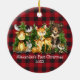 O Primeiro Ornamento de Animais Florestais de Floresta de Cerrado de Natal do bebê. Os animais incluem Urso, Veado, Veado-Bebê, Moose, Raccoon, Coelho Coelho com vegetação florestal. Adicionar Nome. Xadrez de Buffalo Vermelho.