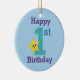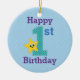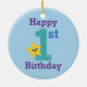Ornamento De Cerâmica Primeiro Aniversário, Azul com Estrela Amarela