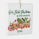 Ornamento Moderno de Pincel Our First Christmas as Grandparents inclui Trem de Pão de Mel em Aquarela com doces, biscoitos e pinheiros. Verde.