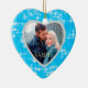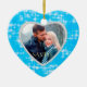Este ornamento de feriado bonito apresenta sua própria foto dentro de um quadro brilhante em forma de coração. O quadro é colocado sobre um fundo azul de gelo decorado com estrelas brancas de quatro pontos. A parte traseira do ornamento tem o mesmo plano de fundo e quadro, com seu texto personalizado em branco em um plano de fundo azul sólido correspondente. Brilhante e elegante!