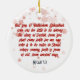 Enfeite cristão personalizado, cachorrinho Dalmático bonitinho com chapéu de Natal, citação bíblia atrás e fundo de neve. Micah 5:2 "Mas você, O Bethlehem Ephrathah, que são muito poucos para estar entre os clãs de Judah, de você virá para mim um que será governante em Israel, cuja vinda é de velhos, de tempos antigos."
