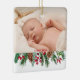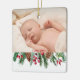 Primeiro Natal bonito como vovó e ornamento de vovô. Verde simples de pinheiro de aquarela com pinho em cones e bagas. Este personalizável ornamento de vovó e vovô é o presente perfeito neste feriado. Coloque sua foto favorita do seu filho, o nome e o ano. O campo da vovó e do vovô também é personalizável se você prefere um nome diferente. Você pode encontrar presentes de Natal personalizados e maravilhosos na Coleção de Presentes de Natal Personalizados na Abstrato Beautily.