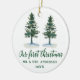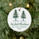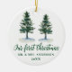 Manuscrito Elegante moderno de caligrafia, Árvores de Pinheiros de Aquarela, Nosso Primeiro Natal, Sr. e Sra. Ornament de Casal de Casamento