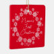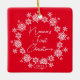 A Primeira Ornação de Natal de Nonna foi colocada sobre um fundo vermelho com uma coroa branca de flocos de neve. Um presente de Natal avô maravilhoso que certamente será precioso por muitos anos. !