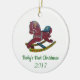 A design neste ornamento é de um cavalo de balanço de madeira pintado por Julia Morrill