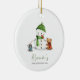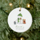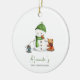 Adornorno primeiro Natal do bebê adorável com uma ilustração exclusiva de um boneco de neve fofo e alguns amigos animais de um lado. No outro lado, você pode adicionar a foto do seu bebê. Uma ótima maneira de celebrar e guardar o primeiro Natal do seu bebê e uma lembrança especial para os avós e outros membros da sua família. Ilustrado e desenhado por Patricia Alvarez.