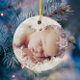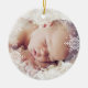 Ornamento De Cerâmica Primeiro Natal do Bebê Branco Flocos de Neve Prata